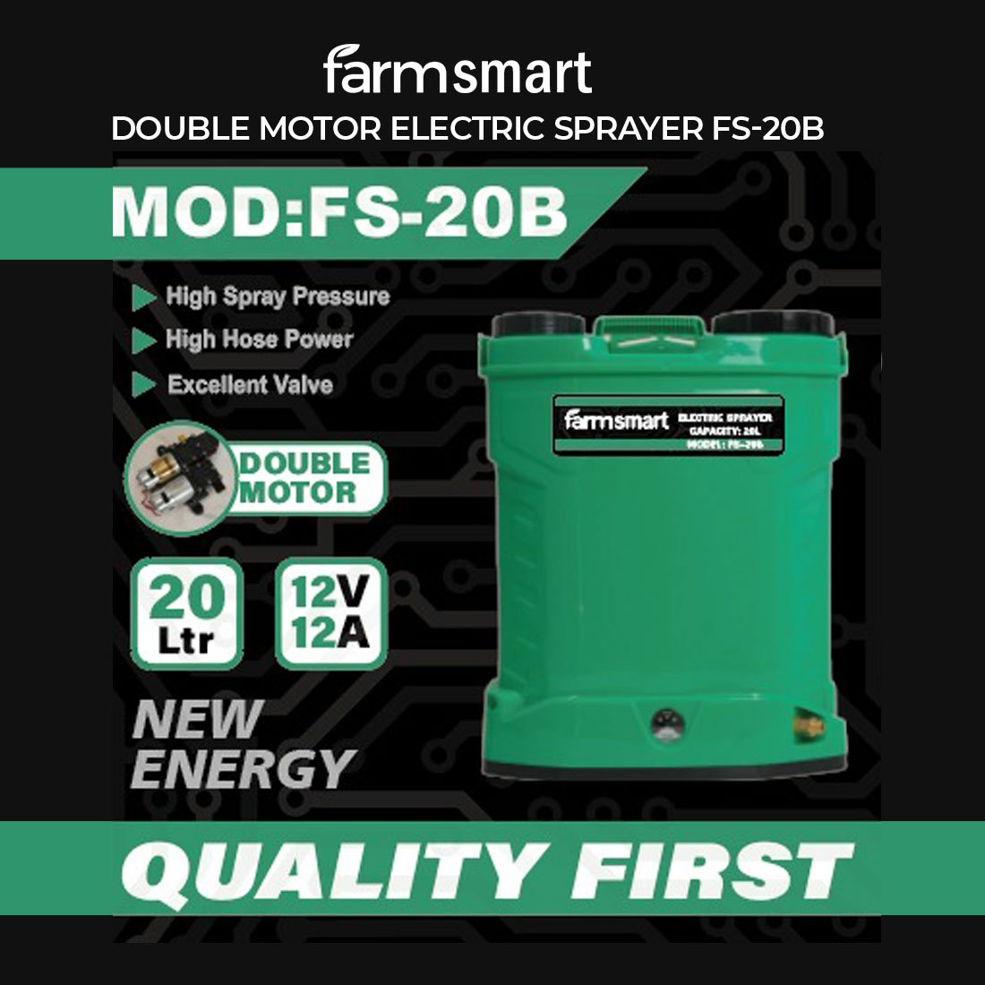 - Dual Motor System: Two motors working in tandem for stable spray pressure and reduced load per motor.